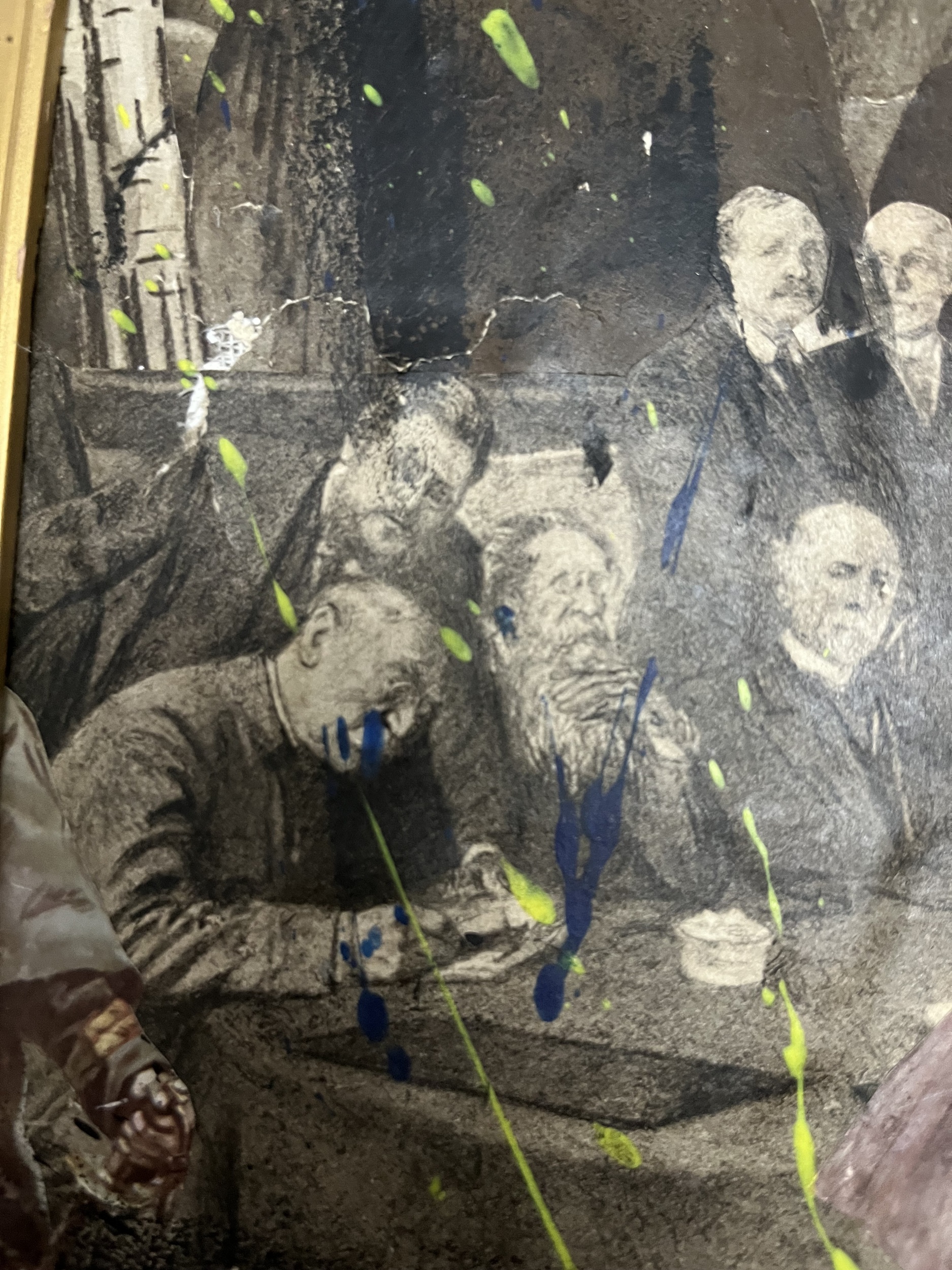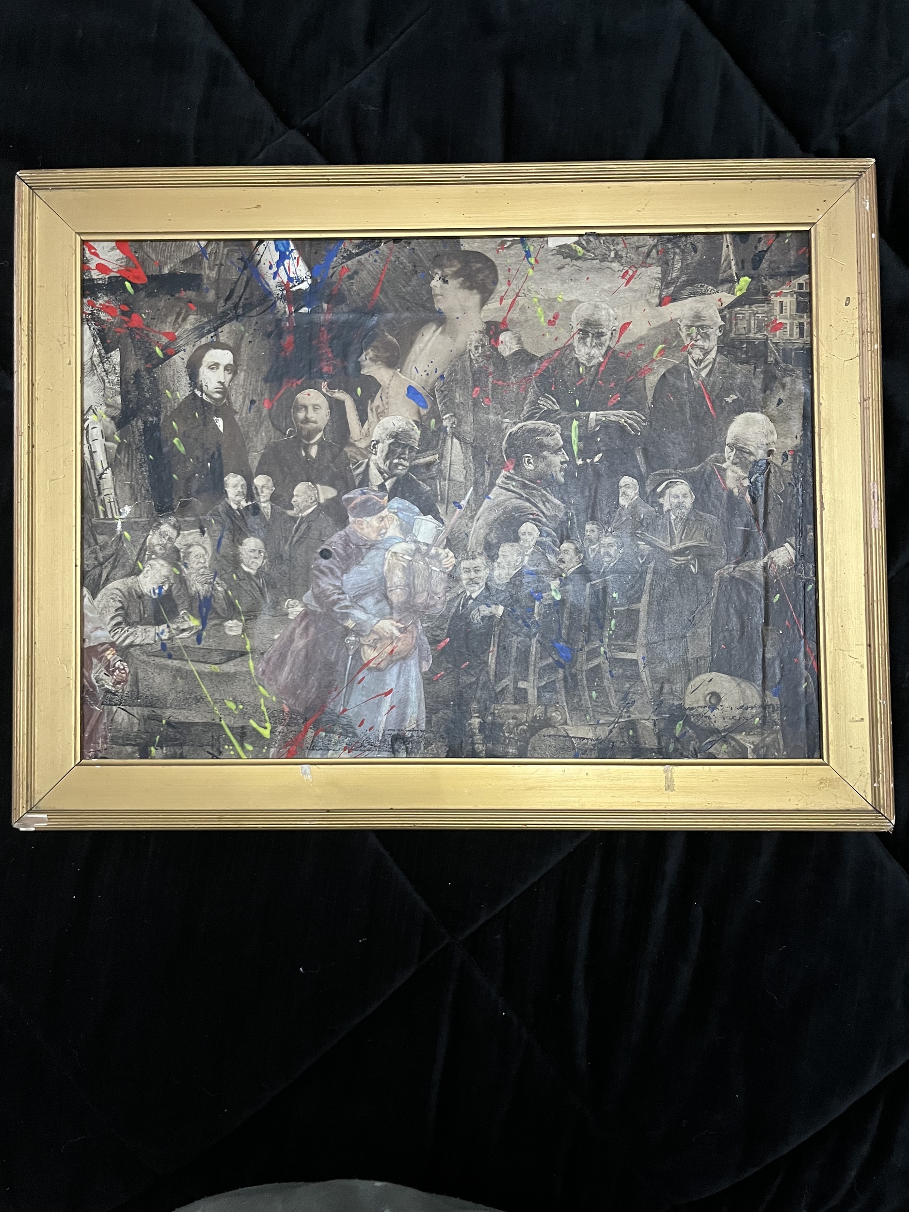 This and other works I have from the same artist have been reframed and repurposed into the art works you now see. This has been framed in an antique frame with considerable character and wear.