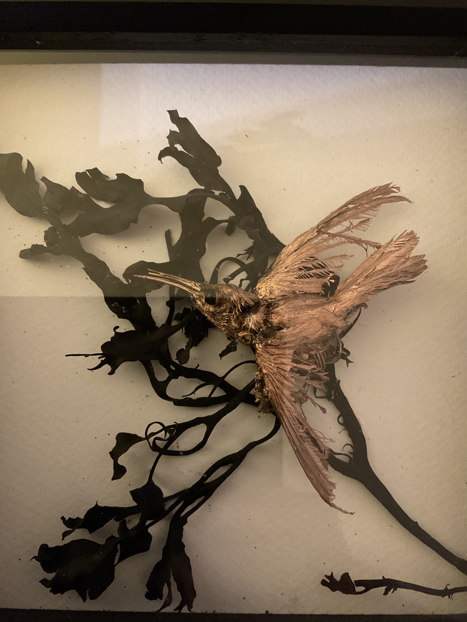 Presented here in its frame is an imaginatively mounted taxidermy bird that now makes for a piece of decorative art.