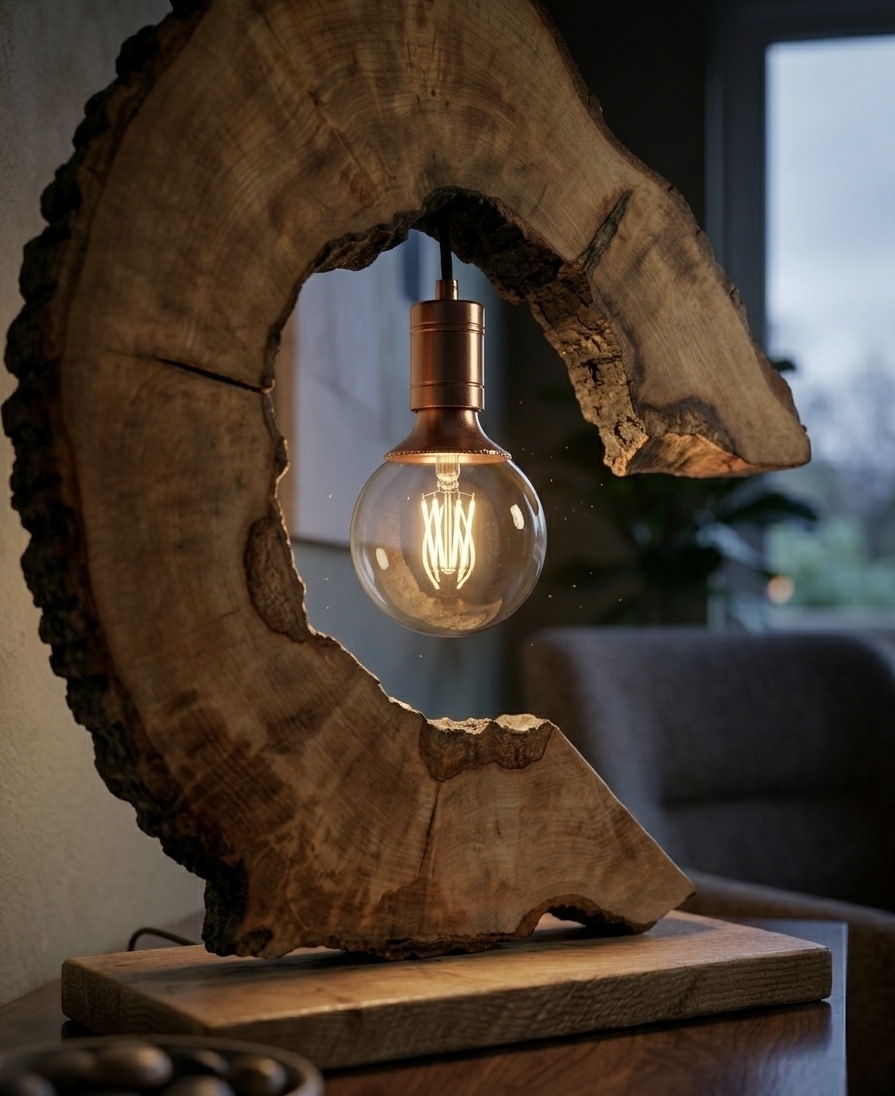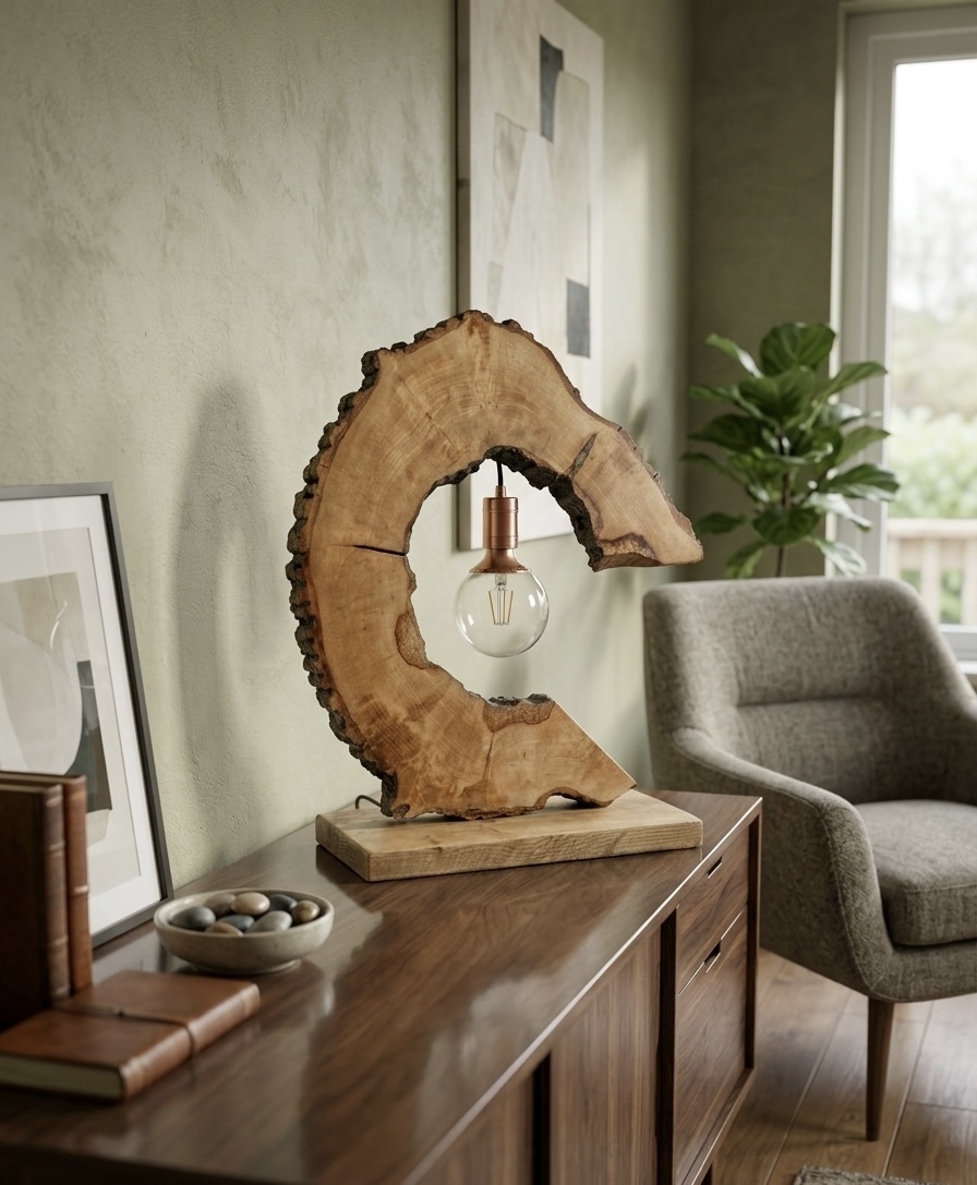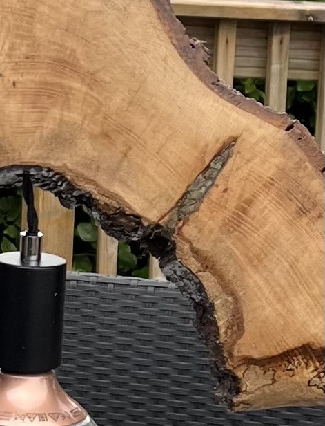 Made from a tree round that had hollowed itself out so had to be felled. Still retains the live edge bark and creates a beautiful sculptural centre piece as well as being a useful lamp.