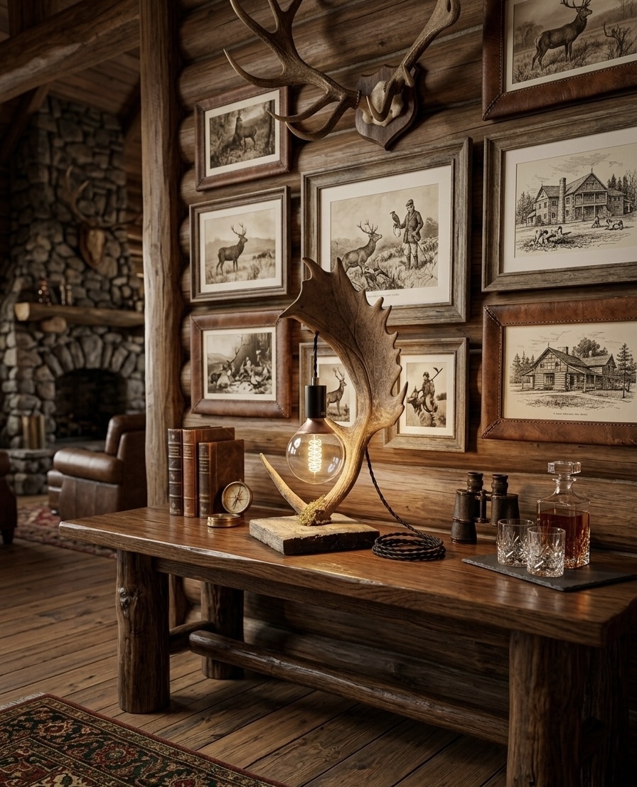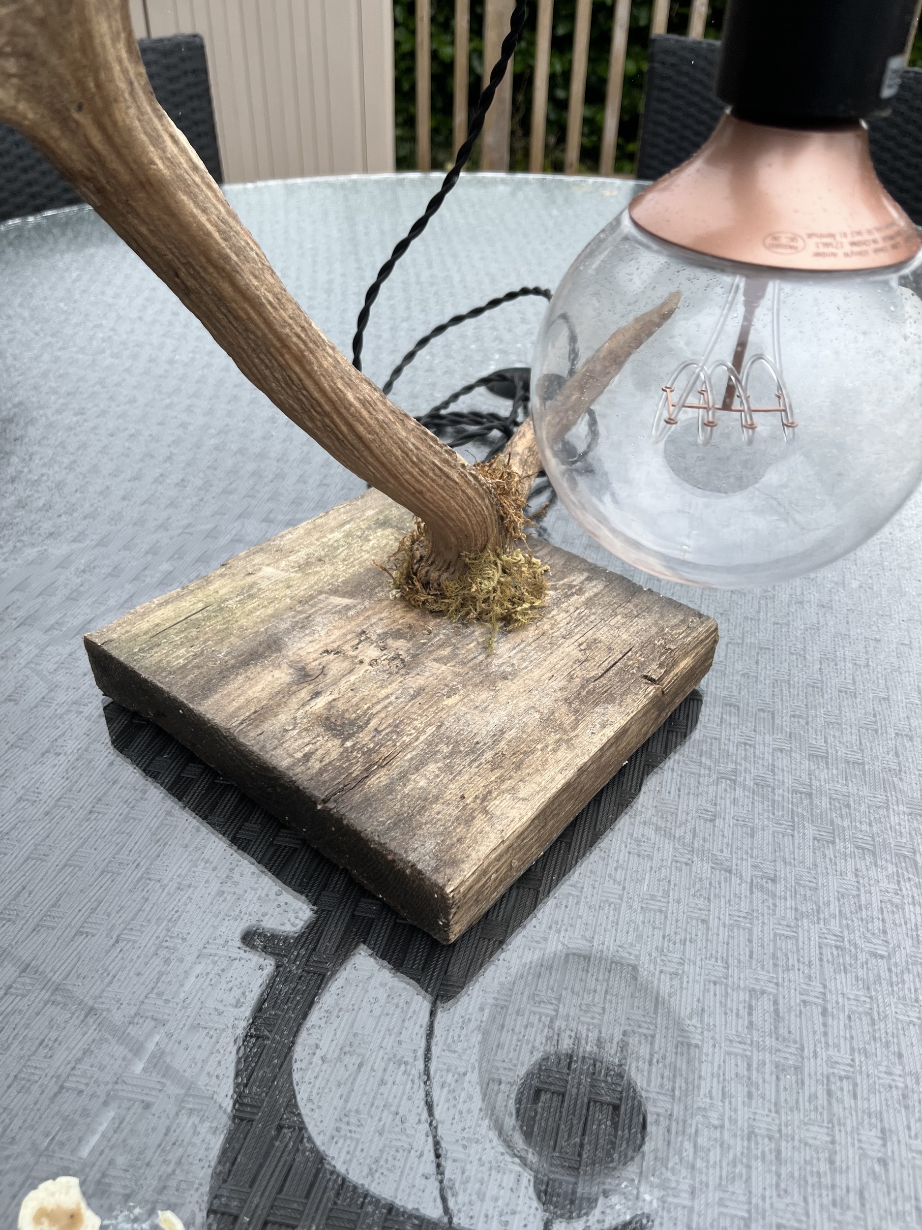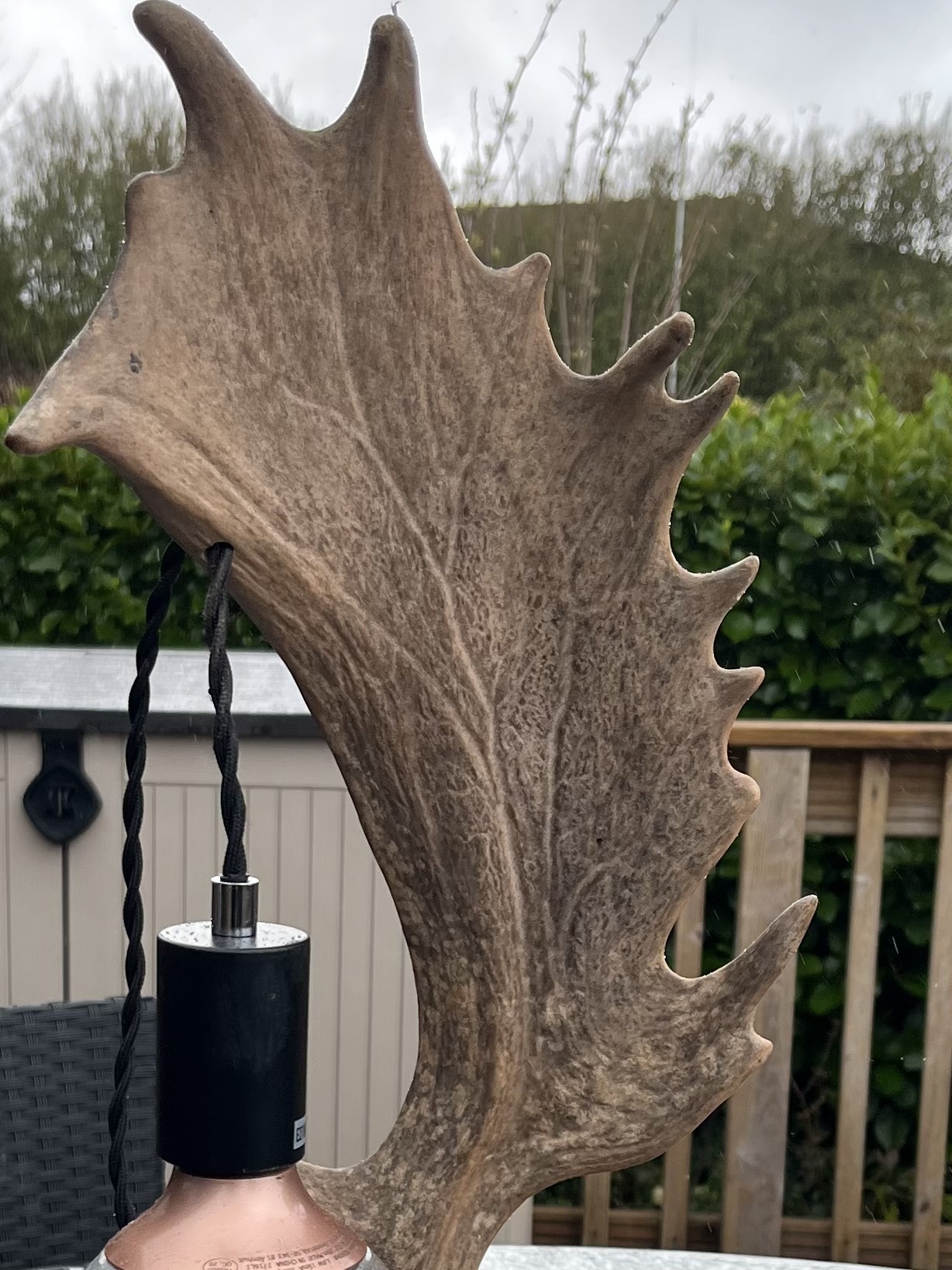 Lovely lamp made from a naturally shed antler. Please see other one which is the other half of the pair. This gives a rare opportunity to to display 2 in mirror image symmetry.