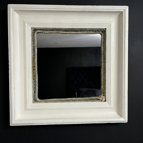 Beautiful large and heavy distressed wooden mirror, with nautical rope…